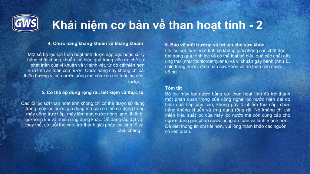Công nghệ sợi carbon hoạt tính – Điểm khác biệt của GWS