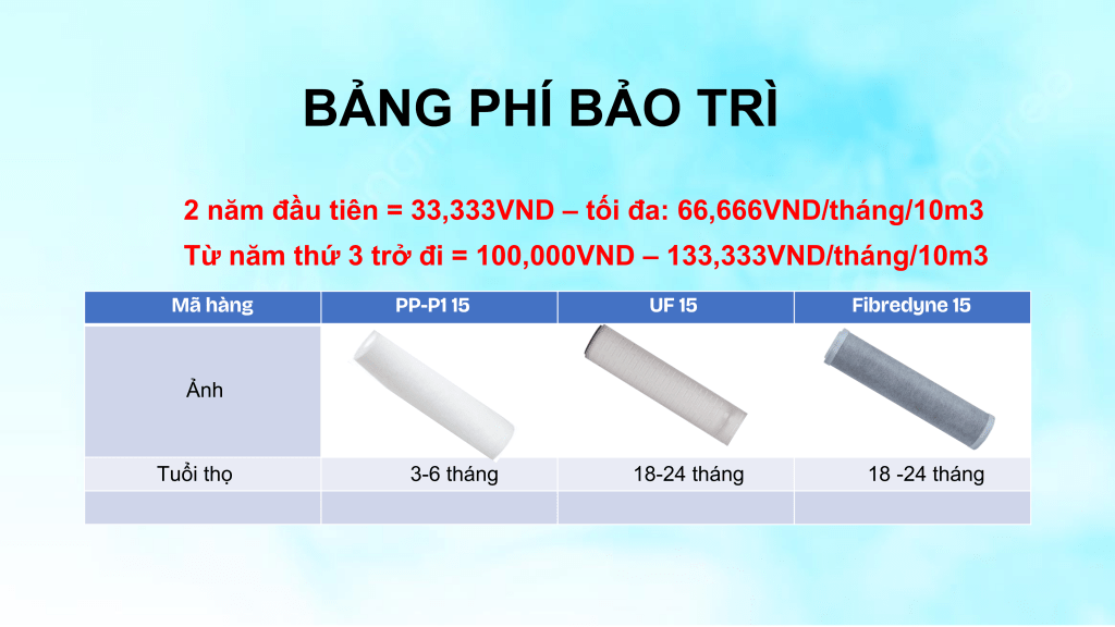 Tuổi thọ lõi lọc Thay định kỳ, hệ thống dùng < 10 năm