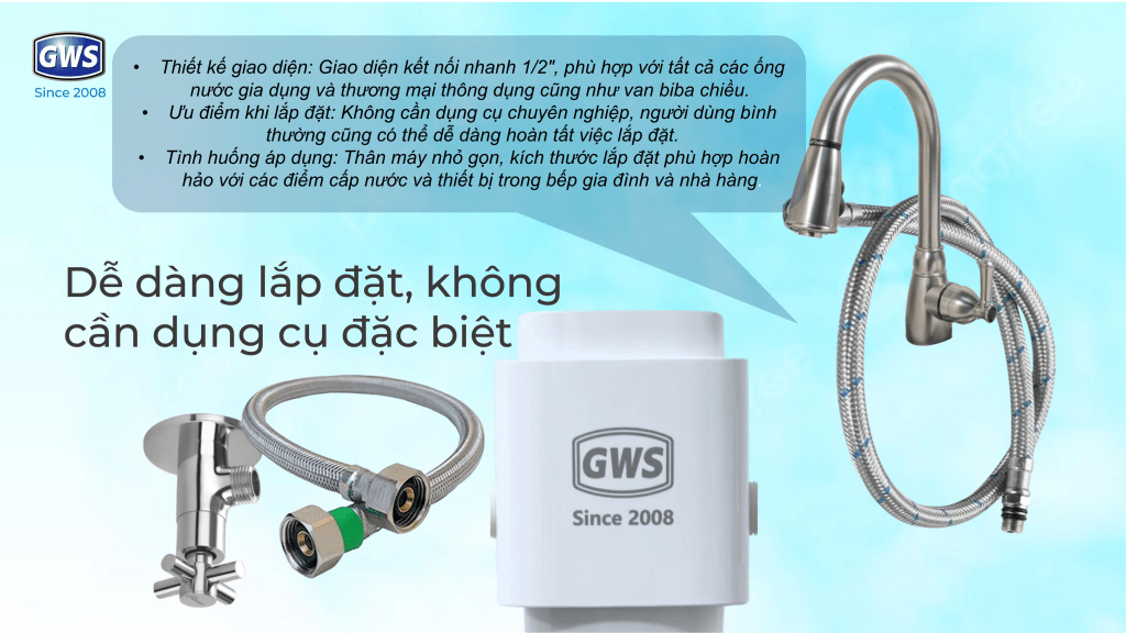 • Không cần cải tạo đường ống, không yêu cầu kỹ thuật phức tạp hay dụng cụ chuyên nghiệp.