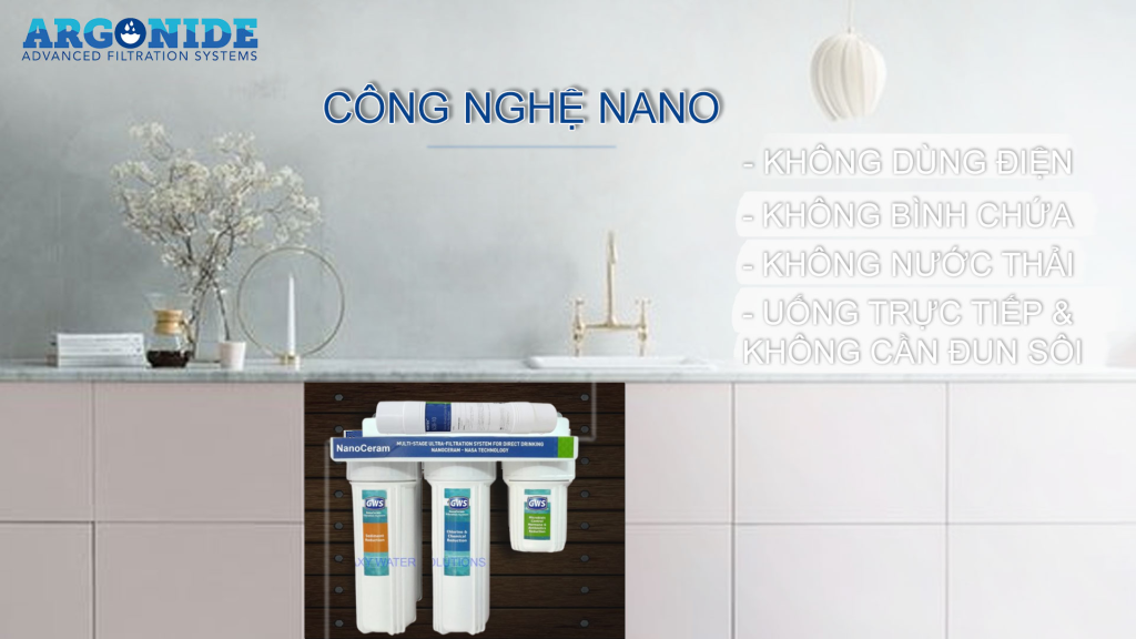 Công nghệ lọc đã được cấp bằng sáng chế NanoCeram® của Hãng Argonide – USA được chế tạo bằng phương pháp nhiệt tạo khối từ các thành phần là sợi thủy tinh và chất xơ hữu cơ, vật liệu này được gắn kết dạng điện tích cho lõi lọc. NanoCeram® có thể lọc với công suất cao, lưu lượng lọc lớn và mức trợ lực thủy lực thấp (là sản phẩm tốt nhất so với các dòng lõi lọc hiện nay)